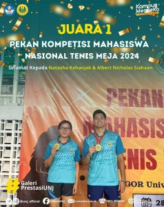 NATASHA DAN ALBERT MAHASISWA FIKK UNJ BERHASIL RAIH JUARA 1 TENIS MEJA DALAM PEKAN KOMPETISI MAHASISWA NASIONAL 2024